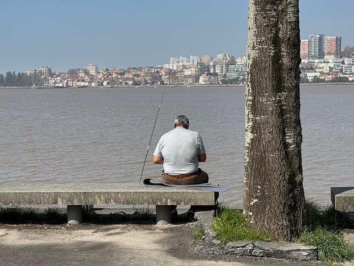 Yesterday, another reminder: a lone fisherman stood where soon there will be many, spending the day in quiet companionship — with one another, and with the fish they occasionally catch. I’ve only seen a few brought in over the years. It isn’t really about the fishing.