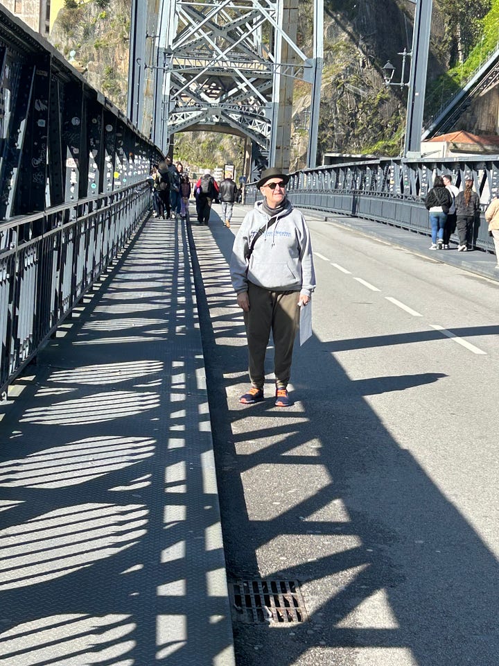 We crossed the Dom Luís I Bridge at the pedestrian level. I remembered walking the upper deck in early 2024, so many meters above the river — on a dare, like other moments in my life that stretched me. No regrets. Still, closer to the water, it felt easier to keep my eyes forward than to look down.